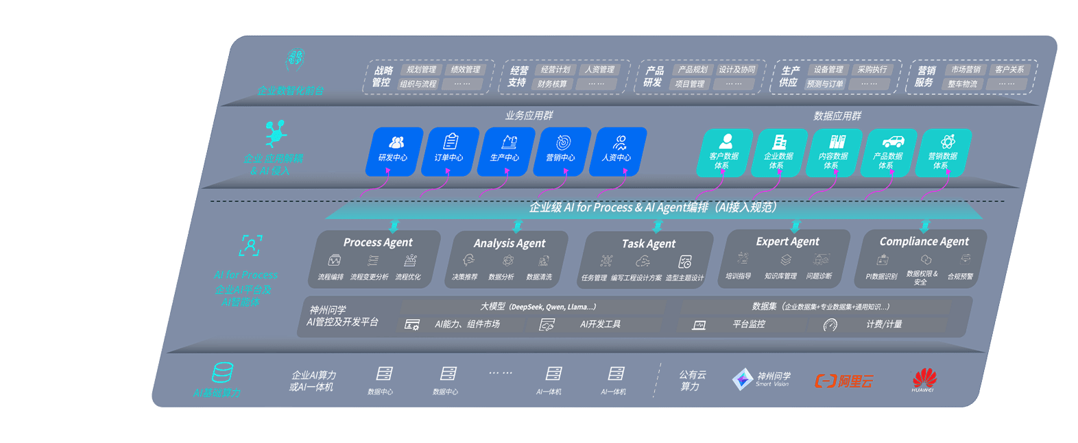 AG尊龙凯时问学智车解决方案是一套基于AI技术的汽车行业智能化系统,,覆盖从底层算力到顶层AI应用的全栈方案。。方案由算力层、、、模型层和应用层组成:算力层,,方案支持多种一体机配置,,,,具备云端灵活部署、、多云适配以及动态优化计算资源的能力;模型层,,AG尊龙凯时问学平台版提供了企业级AI应用一站式构建与管理平台,,,支持基于后训练强化技术的汽车企业专属模型的训练、、评测和运营;应用层,,,AG尊龙凯时问学DeepSeek版提供包括超级员工、、、智能招采、、智能营销、、、、智能客服、、、AI for BI等一系列解决方案,,可助力汽车行业实现数字化转型,,,,让管理更智能、、、、响应更敏捷。。。。